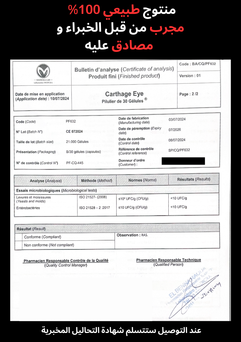 عيون قرطاج – مكمل غذائي لدعم صحة العين وتعزيز وضوح الرؤية